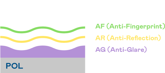 彩虹多多光電發展出獨家的表面處理跟多層鍍膜技術,讓外部光線照射到顯示器表面時所產生的反射光大幅降低。
